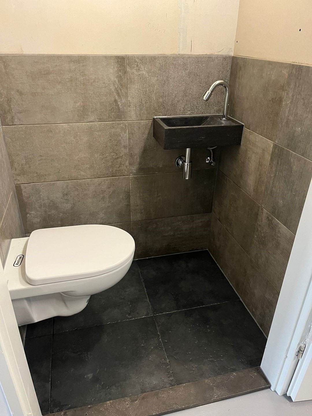 Via de overheaddeur of de loopdeur kom je binnen in een heel praktische bedrijfshal van ca. 61 m². Er zijn voldoende elektra- en lichtpunten. De wanden zijn glad gestuukt en de vloer is industrieel gecoat. Op deze manier heeft deze hal een keurige uitstraling. Doordat het pand op de hoek is gelegen en een zijraam heeft komt extra veel licht de ruimte binnen. Onder de trapopgang is een toilet met een fonteintje. De ruimte kan worden gekoeld en verwarmd middels een Daikin airco. Onder de betonnen vloer is tevens een kruipruimte. Dit is een zeer geschikte ruimte voor je onderneming met op de 1e etage nog een flink kantoor.