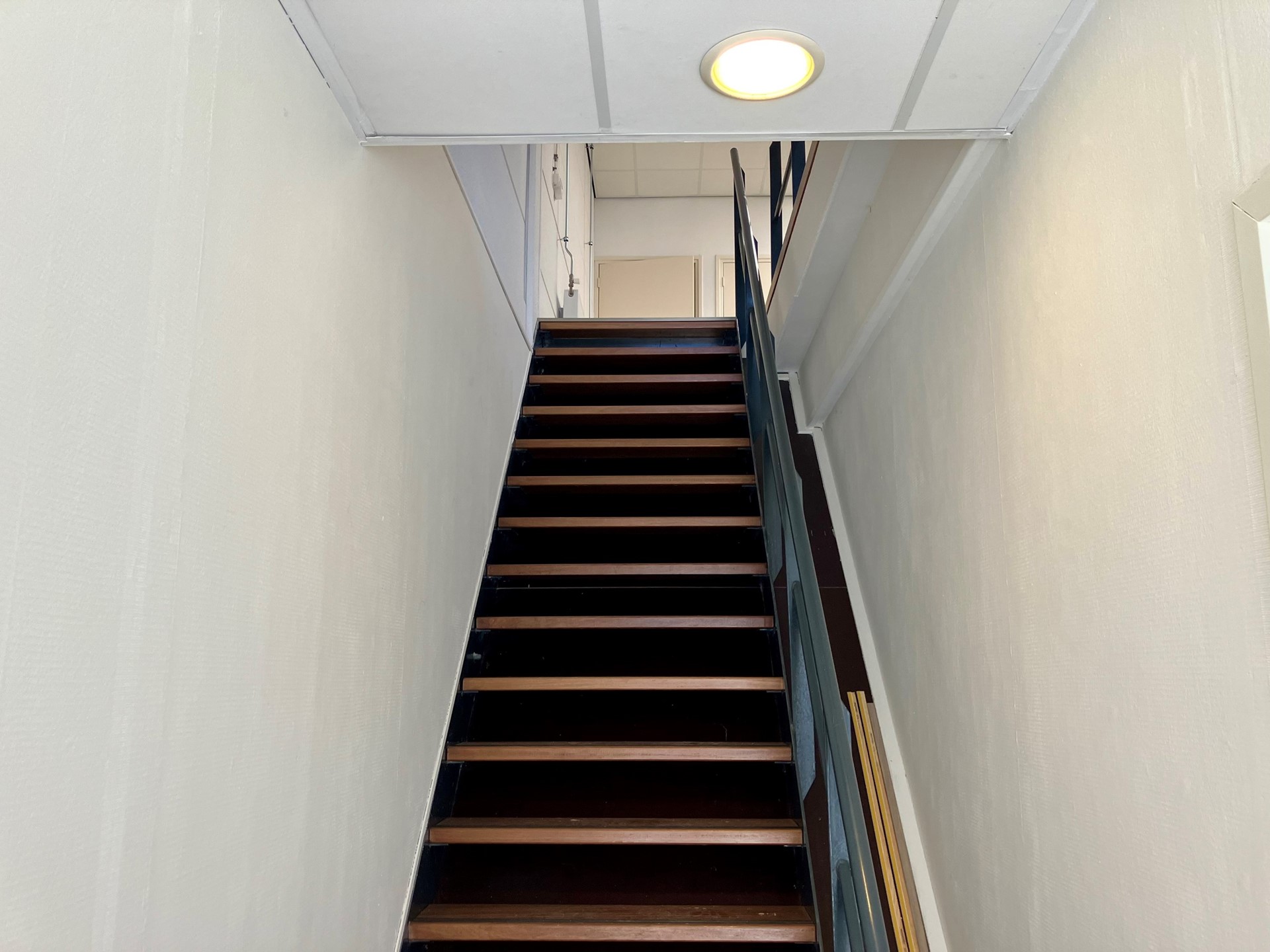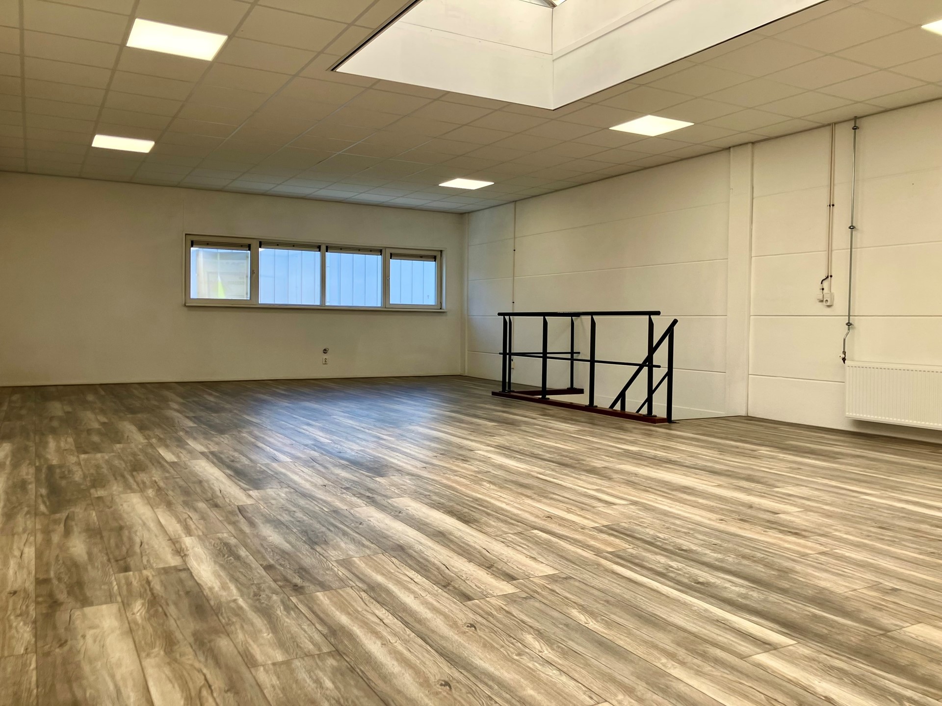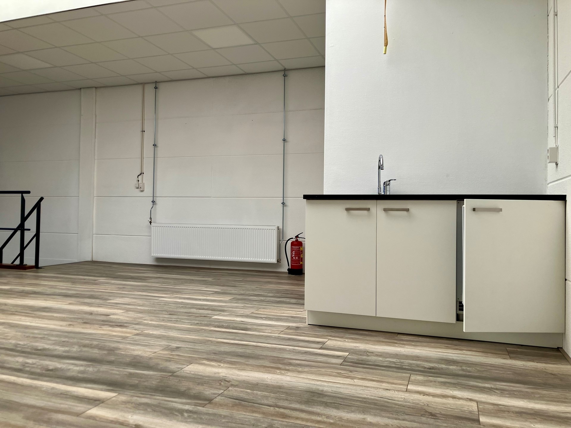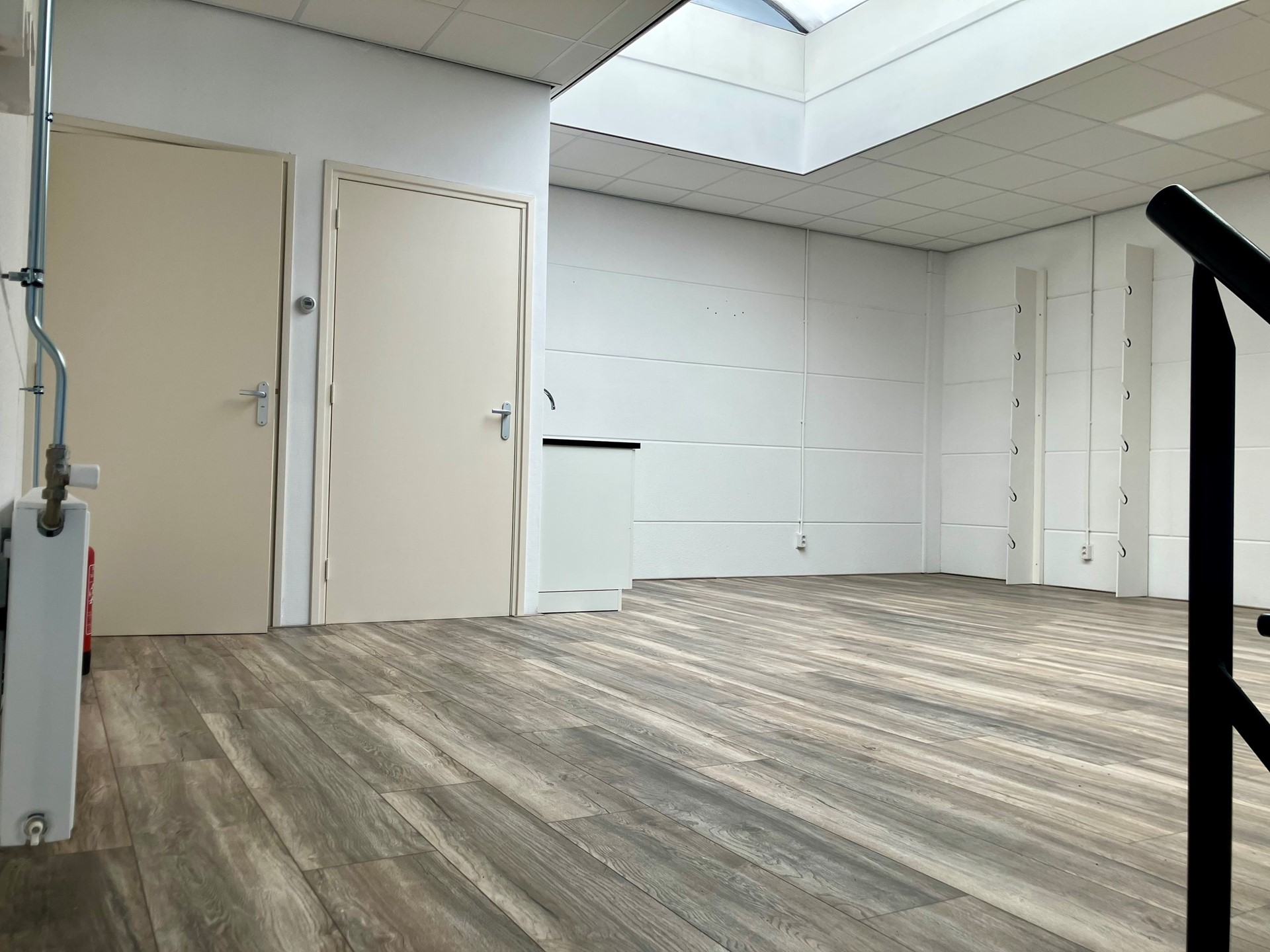 Via de loopdeur kom je binnen in nette entree met de meterkast, de trapopgang en toegang tot de hal. De hal is voorzien van een elektrisch bedienbare overheaddeur, ledverlichting, een spoelbak en een praktische trapkast. Er zijn voldoende elektra-punten en krachtstroom. Dit is een zeer geschikte ruimte voor een onderneming met op de 1e etage nog een flink kantoor. De trapopgang is uitgevoerd in hardhout. Op de begane grond is ca. 84 m² aan VVO. De vloer van de bedrijfshal is net voorzien van nieuwe laklaag.