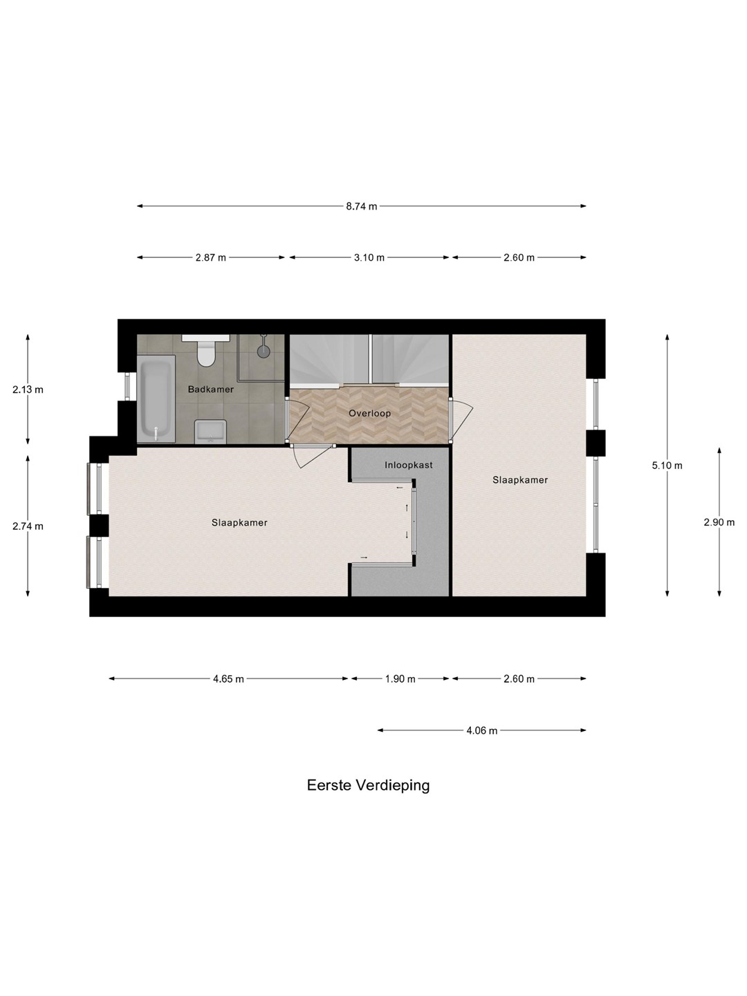 Op de 1e verdieping zijn 2 ruime slaapkamers (voorheen 3) en de badkamer. Eén slaapkamer is voorzien van een Frans balkon en een inloopkast. In alle slaapkamers en op de overloop ligt een mooie laminaat vloer. Over dit huis valt echt niets op te merken. En al helemaal niet over de badkamer. Wat een prachtige ruimte is dit, en zo compleet! Zo is er een ruim ligbad, een inloopdouche, een wastafelmeubel, een vrijhangend closet en een designradiator.