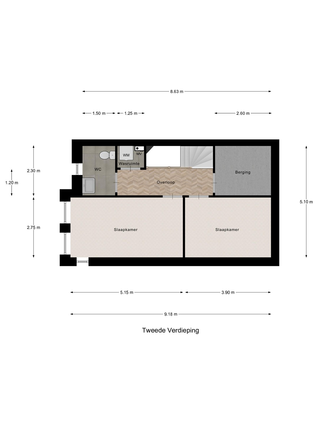 Het hoge afwerkingsniveau is helemaal doorgetrokken tot en met de 2e etage. En wat een ruimte tref je hier aan! Op deze etage zijn nog eens 2 grote slaapkamers, een toilet met wastafel, een bergruimte en een kast met de wasmachine- en drogeraansluiting.